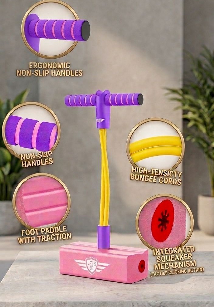 A kids’ pogo stick is a fun, action-packed toy that lets children bounce around and get some exercise! 🌟 It’s like a mini trampoline on a stick, with a spring that lets kids jump up and down.Age range: Usually for kids aged 3-12 years, depending on the modelSafety features: Handlebars for balance, footrests, and sometimes safety gripsFun factor: Great for outdoor play, improving balance and coordination