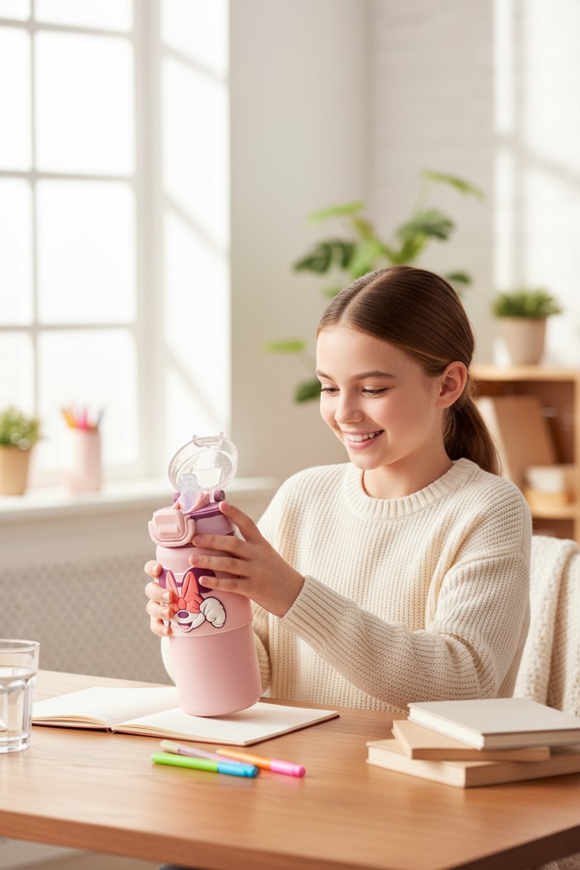 The sleek baby pink design with grip strap and vibrant graphics makes it a favorite for young fans, encouraging children to stay hydrated throughout the day. Lightweight and practical, it’s perfect for school, sports, travel, and outdoor activities. Combining style, safety, and durability, this water bottle is both fun and functional.